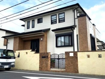 | お客様のご要望 | 10年前に屋根外壁塗装をしていますが、屋根もだいぶ劣化してきているので今回はカバー工法を考えています。 色々調べて屋根材もどれにするか悩みます。 外壁塗装の色もこだわりたいと思っていますが、タイル調部を単色にするかダブルトーンにするか迷います。 |
